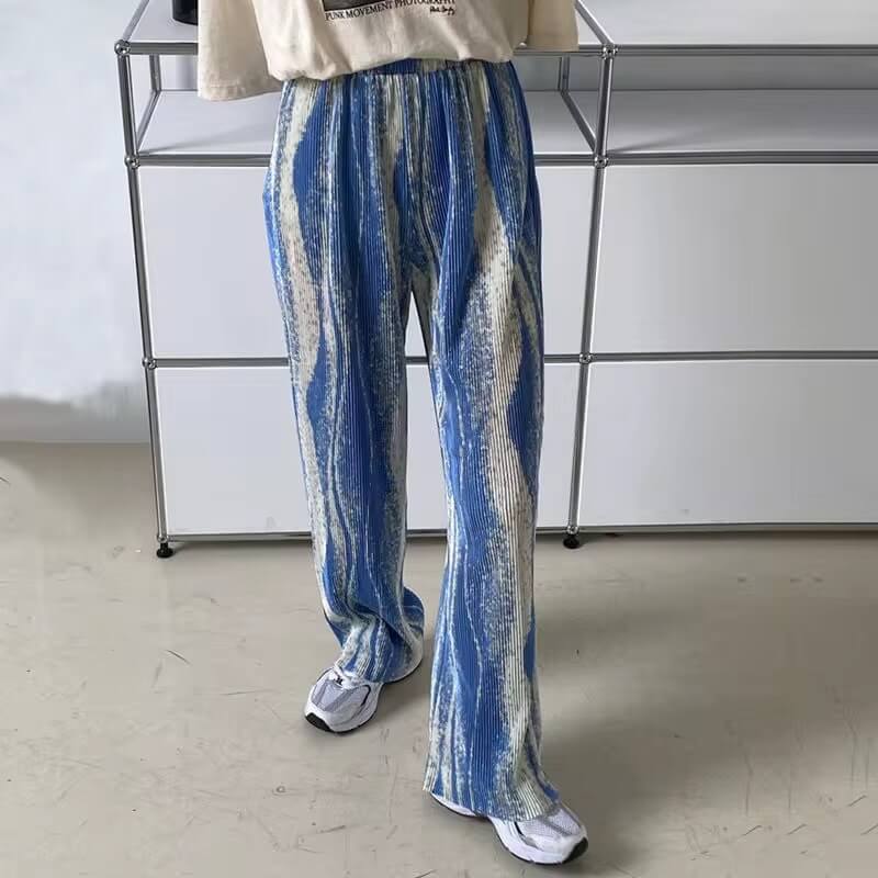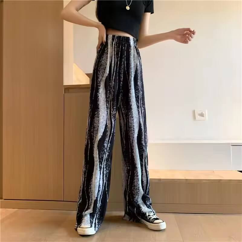Casual Short Sleeved Knitted Trousers Elastic Waist Women Home Wear